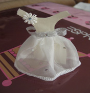 Vestido de comunhão/noivaMaterial: Organza, tecido de cetim, fita de seda, aplicaçõesDimen:8 cm x 4 cm